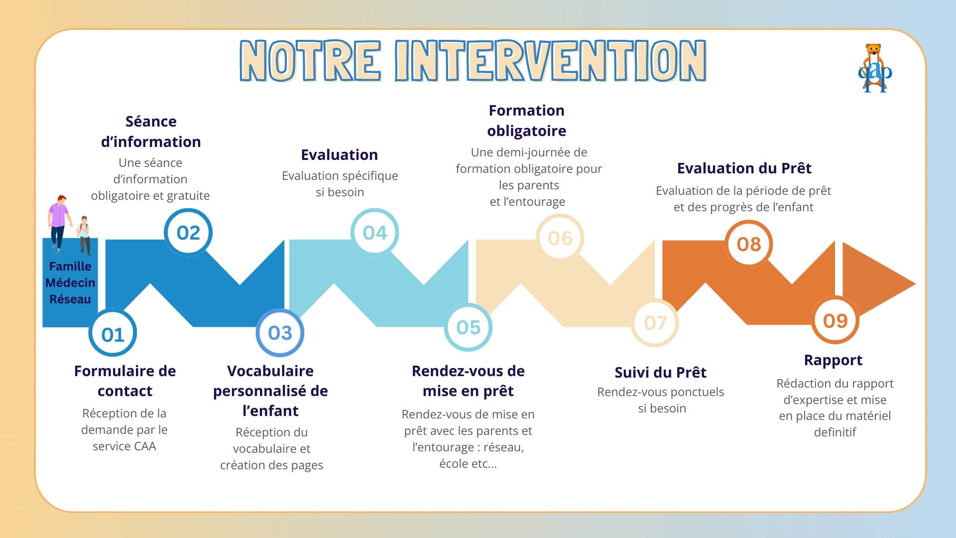 - Former les parties prenantes (famille, école, réseau) et accompagner l’entourage dans la mise en place de l’outil